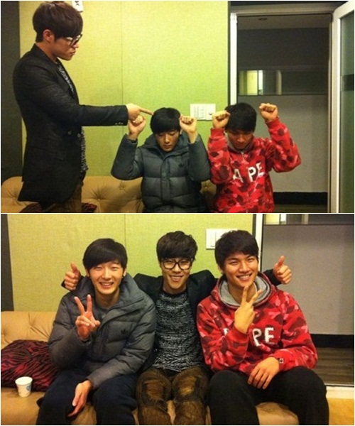 이현은 12일 자신의 트위터에 "스케쥴 끝나고 가는 길에 녹음실에 위탄 지훈이랑 오 데이빗 있다고 해서 들렀어요. 이것저것 아주 상냥하게 함께 토의도 하고 애들도 즐거워하더라구요 ^^"라는 글과 함께 한 장의 사진을 올렸다.