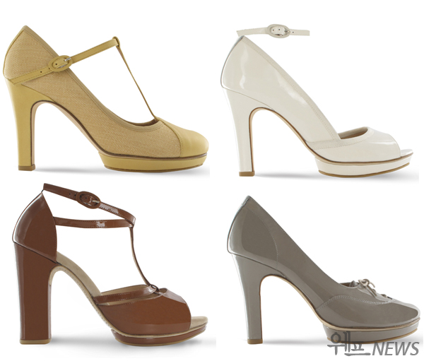 또한 유행에 민감하지 않으며, 언제나 여자들에게 환영받는 로맨틱 핑크 하이힐도 굳건히 모습을 드러냈다. 지니 킴의 핑크 하이힐은 시폰으로 된 리본 디테일과 새틴소재가 어우러졌고, 질 스튜어트의 가벼운 핑크 컬러와 골드 포인트 굽으로 된 하이힐은 올 봄 화이트 원피스와 완벽한 하모니를 보여줄 듯하다.