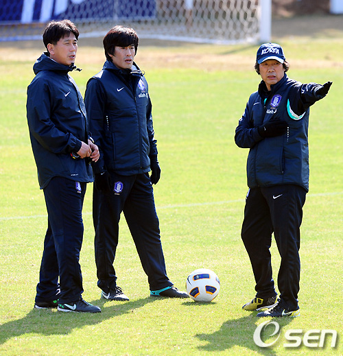 지난 23일 이틀째 훈련서 조광래 감독은 김정우(상주)를 왼쪽 측면 공격수로 내세우기도 하고 박주영(AS 모나코)을 처진 스트라이커로 기용하기도 했다. 또 박주영을 여러 포지션에 세우면서 실험을 이어갔다.