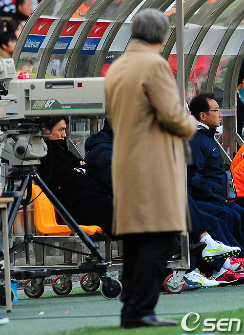 후반 중국 블라제비치 감독이 한국 홍명보 감독을 바라보고 있다. /jpnews@osen.co.kr