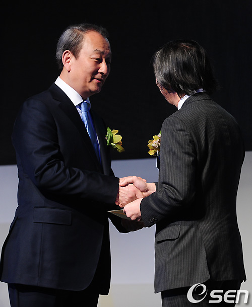 KBO 유영구 총재가 무토 마사토시 주한 일본대사에게 일본 대지진 피해 성금을 전달하고 있다. /soul1014@osen.co.kr
