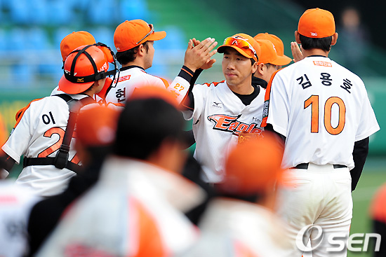 시범경기에서 그래도 몇 가지 희망은 보였다. 올해로 10년차가 된 좌타 외야수 김경언이 12경기에서 34타수 15안타로 타율 4할4푼1리를 기록했다. 롯데 홍성흔(0.514) 다음으로 높은 시범경기 2위에 해당하는 고타율. 새로운 1번 타자로 테스트받은 전현태도 37타수 14안타 타율 3할7푼8리로 가능성을 보였다. 팀 도루도 21개로 8개 구단 중 가장 많았다. 기동력의 야구가 어느 정도 올라왔다.