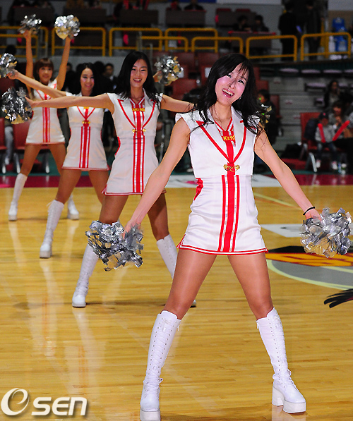 LG 치어리더들이 코트 위에서 화려한 공연을 펼치고 있다./rumi@osen.co.kr