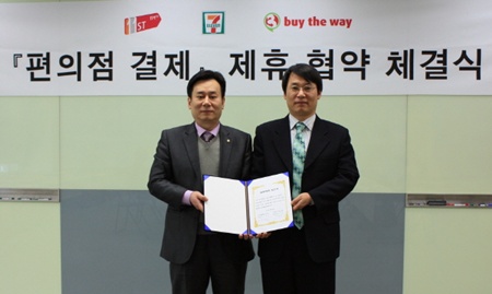 [이브닝신문/OSEN=이성원 기자] SK텔레콤 오픈마켓 11번가가 세븐일레븐, 바이더웨이를 운영하는 코리아세븐과 ‘편의점 결제’를 위한 조인식을 지난 29일 가졌다. 이로써 11번가 고객들은 전국 1만여개 편의점에서 편하고 안전하게 상품 결제를 할 수 있게 됐다.