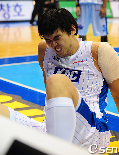 3쿼터 KCC 하승진이 균형을 잃고 넘어져 고통을 호소하고 있다./rumi@osen.co.kr