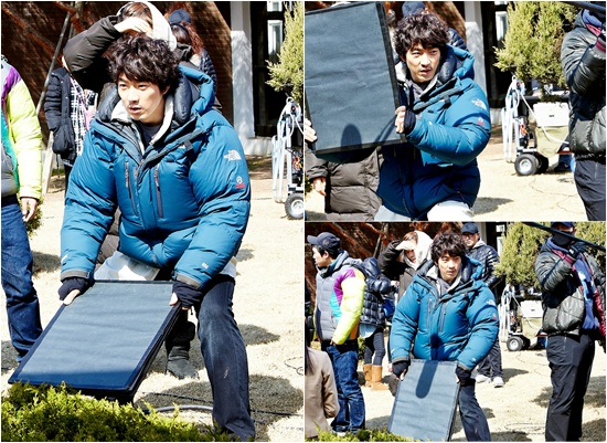 KBS 2TV 월화드라마 '강력반'의 열혈 형사 송일국이 현장에서 막내 스태프로 변신한 모습이 눈길을 끈다. 촬영 현장에서 반사판을 들고 있는 모습이 공개된 것.