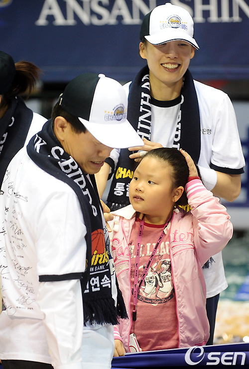 경기 종료후 신한은행 전주원이 딸과 함깨 포즈를 취하고 있다. / soul1014@osen.co.kr