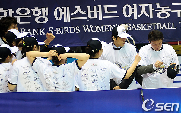 우승을 확정짓자 신한은행의 지휘봉을 잡고 있는 임달식(47) 감독이 눈물을 흘렸다. '냉혹한 승부사' 등과 같은 평소 이미지와 다른 모습이었기 때문에 주변의 모든 사람들이 놀랐다.