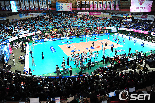 2010-2011 NH농협 V-리그 챔피언 결정 1차전 대한항공-삼성화재의 경기가 3일 인천 도원 체육관에서 벌어졌다.