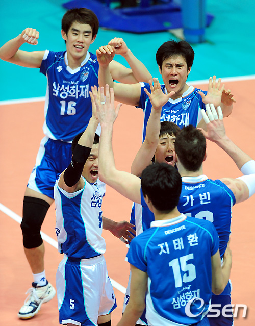 삼성화재가 3일 낮 인천 도원실내체육관에서 열린 대한항공과 2010~2011 NH농협 V리그 챔피언결정전 1차전에서 세트스코어 3-1(22-25 29-27 25-14 25-18) 역전승을 거뒀다.