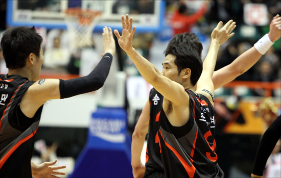한 번 터진 3점포는 멈추지 않았다. 설상가상으로 동부는 3-2 드롭존에서 포스트 양 쪽을 지키는 로드 벤슨과 윤호영이 발목 부상으로 코트와 벤치를 들락날락했다. 수비조직력에 미세한 틈이 생기기 시작한 것이다. 그러자 KT 특유의 무빙오펜스는 더욱 유기적으로 돌아갔다. 3쿼터에도 박성운 조성민 조동현이 던진 3점슛이 차례로 그물을 갈랐다. 빅터 토마스가 3쿼터 막판에 11점을 몰아넣어 역전을 허용했으나 KT의 슛 감각도 달아오를 대로 달아오른 상태였다.