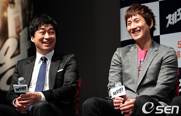 배우 박중훈과 이선균이 주연으로 출연하는 영화 '체포왕' 제작보고회가 5일 오후 서울 건대입구 롯데시네마에서 진행됐다.
