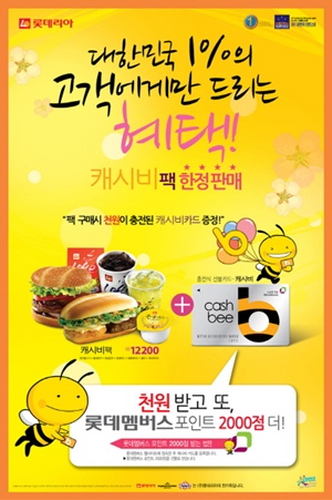 롯데리아, 캐시비팩 구매시 천원 충전된 캐시비카드 증정