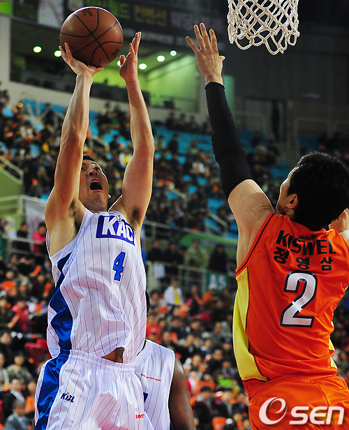 3쿼터 KCC 추승균이 전자랜드 정영삼의 블로킹을 피해 레이업슛을 날리고 있다./rumi@osen.co.kr