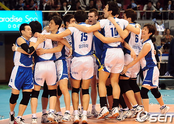경기종료 후 삼성화재 선수들이 승리의 기쁨을 나누고 있다./soul1014@osen.co.kr