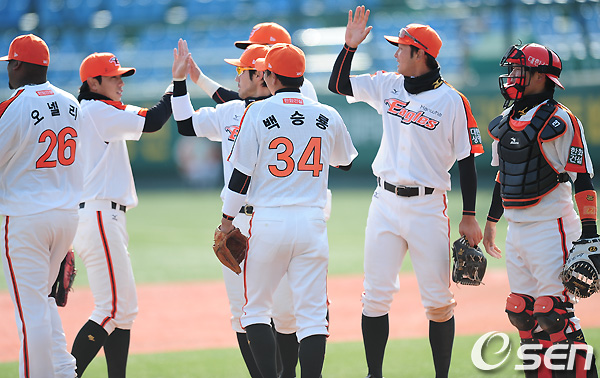 야구는 분위기 싸움이다. 한화는 리빌딩을 통해 확젊어진 팀이다. 그래서 팀 분위기가 더 중요하다. 개막전에서 충격적인 영봉패를 당했지만 그 다음날 스무살 안승민이 혼신의 역투로 팀을 구했다. 한대화 감독은 수비실책 2개를 연속해 저지른 정원석을 빼지 않고 3루에서 2루로 보내며 용기를 북돋았다. 지난 6일 대전 KIA전에서는 패색이 짙던 경기를 9회말 최고참 강동우의 동점 투런포와 10회말 이대수의 끝내기 솔로포로 뒤집었다. 9회말 1사 만루 끝내기 찬스에서 몸쪽으로 향하는 공을 피한 뒤 병살타로 물러나며 자책한 이여상은 이대수를 뜨겁게 끌어안았다. 이여상은 "안타 2개가 의미 없어졌다"면서도 안도의 한숨을 쉬었다. 그렇게 팀은 하나로 똘똘 뭉쳤다. 한대화 감독은 "그날 경기를 이기고 기대할 만한 게 생겼다. 점점 좋아지리라 믿는다"고 했다. 분위기 탄 한화는 충분히 해볼 만해졌다.