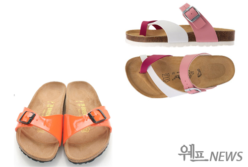 호킨스의 ‘SEDANO’는 화이트와 연핑크, 핑크의 세 가지 색상 조합으로 트렌디함을 강조했다. 또한 버켄스탁의 ‘MADRID’ 역시 핫 핑크, 오렌지, 그린 등 비비드한 컬러의 에나멜 소재를 사용해 코르크 샌들 특유의 편안함은 살리면서 스타일도 업그레이드 시켰다.