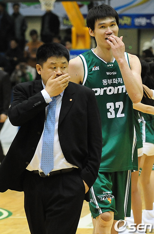 경기종료 후 동부 강동희 감독과 김주성이 이야기를 나누고 있다. /soul1014@osen.co.kr