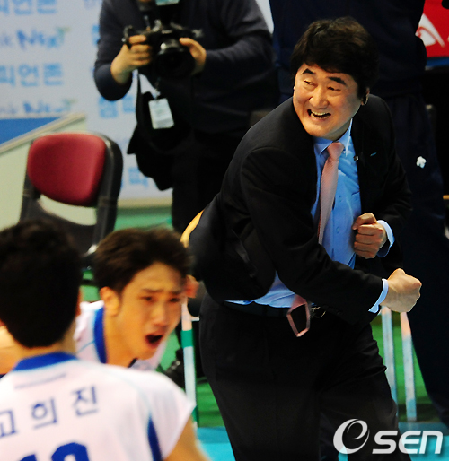 삼성화재 신치용 감독이 우승이 결정되자 주먹을 불끈 쥐며 기뻐하고 있다. /jpnews@osen.co.kr