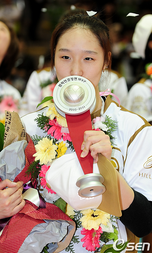경기종료 후 MVP로 선정된 황연주가 트로피에 키스를 하고 있다./ soul1014@osen.co.kr