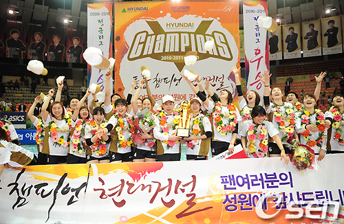 황현주 감독이 이끄는 수원 현대건설 힐스테이트는 9일 수원실내체육관에서 열린 2010~2011 V리그 여자부 인천 흥국생명 핑크 스파이더스와 챔피언결정전 6차전서 세트 스코어 3-1(21-25 25-21 25-23 25-18)로 역전승했다.