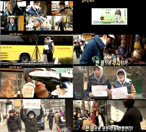 이번 도전은 자본금 단 돈 만원으로 식비와 교통비까지 충당해야 한다는 점 외에도 연예인이라는 점을 이용하면 안 된다는 것과 지인이나 제작진의 도움을 일체 받을 수 없다는 영업수칙도 더해져 멤버들을 더욱 고민에 빠지게 만들었다.