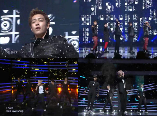 빅뱅은 10일 방송된 '인기가요'에서 각 음원 사이트에서 1위 자리를 차지한 '러브송'과 '스튜피드 라이어'를 선보여 "역시 빅뱅이다!"를 감탄을 자아내게 했다.