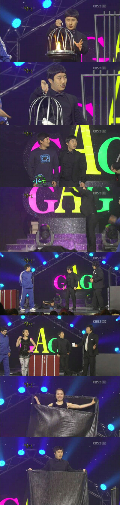 10일 방송된 KBS 2TV ‘개그콘서트-달인’에서 김병만은 16년 동안 일루전 마술을 해 온 매직의 달인 ‘유성 김병만 선생’으로 등장했다.