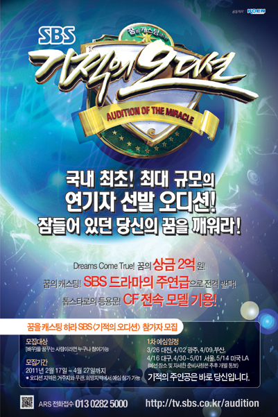 연기자 오디션 프로그램인 SBS '기적의 오디션'이 세계의 심장부, 뉴욕 타임스퀘어 전광판 광고를 송출한다.