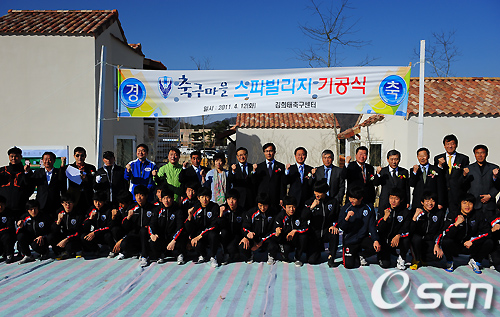축구마을 기공식에서 포토타임을 갖고 있다./rumi@osen.co.kr