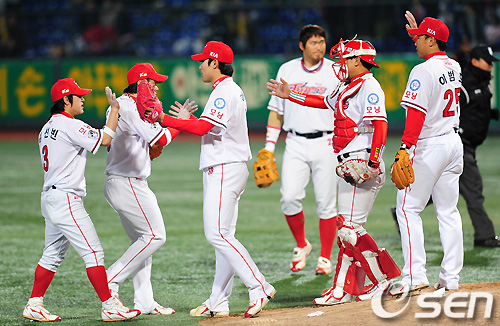 경기 종료후 KIA 선수들이 승리의 기쁨을 나누고 있다. /sunday@osen.co.kr