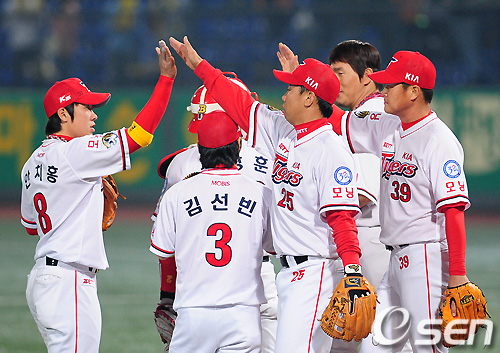 경기 종료 후 KIA 선수들이 승리의 기쁨을 나누고 있다. /sunday@osen.co.kr