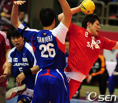 한국은 24일 광명실내체육간서 열린 2011 SK 한일핸드볼 슈퍼매치 남자부 경기서 주전들의 고른 활약에 힘입어 일본에 30-24로 승리했다.