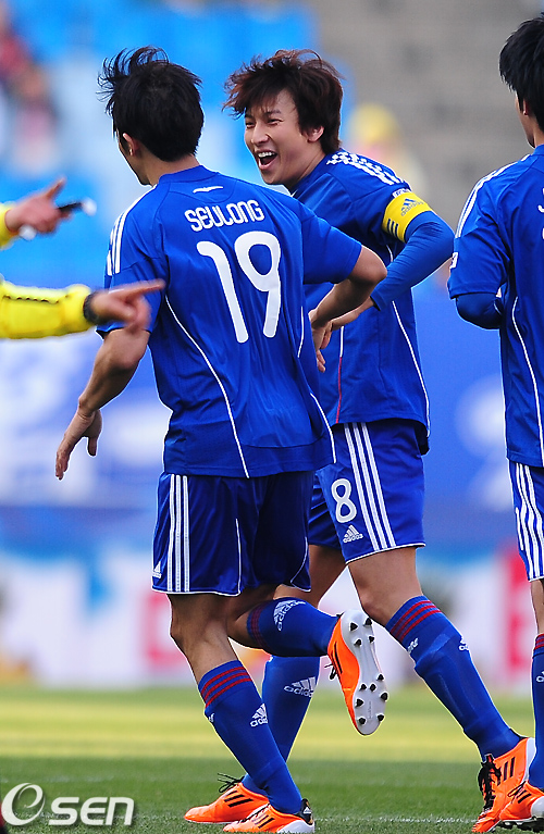 전반 FC MEN 임슬옹이 팀 세번째 슛을 성공시킨 후 박건형과 기쁨을 나누고 있다. /rumi@osen.co.kr