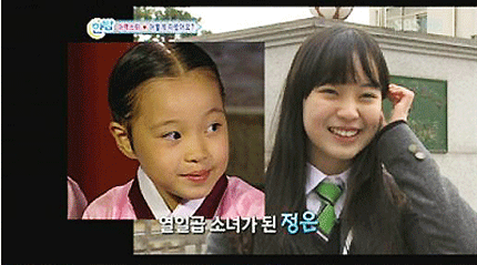 MBC ‘대장금’에서 이영애의 아역으로 활약했던 조정은은 지난 달 SBS‘한밤의 TV연예’에 출연해 어엿한 고등학생이 된 모습을 공개했다. 똘망똘망한 눈과 오동통한 볼로 귀여운 외모를 자랑했던 조정은은 성숙해진 여고생의 모습을 보였다. ‘대장금’의 대히트로 조정은의 어린 시절 모습이 각인 된 대중들은 훌쩍 자란 조정은의 모습에 감탄을 금치 못했다.