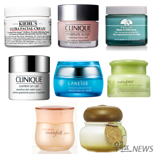 이니스프리의 '그린티 퓨어 크림'은 부드러운 발림과 그린티 성분이 피부 위부터 속까지 촉촉하게 채워주며, 다당체 성분이 피부 수분 보호막을 형성하는 에코적인 물방울 수분 크림이다. 최근에 출시된 스킨푸드의 '골드키위 크림'은 미백기능이 추가되어 더욱 환영받는 수분크림이다. 골드키위 껍질 성분이 자외선으로 칙칙해진 피부도 투명하게 가꾸는데 도움을 주며, 수분이 듬뿍 담겨 피부를 생생하게 유지해준다.
