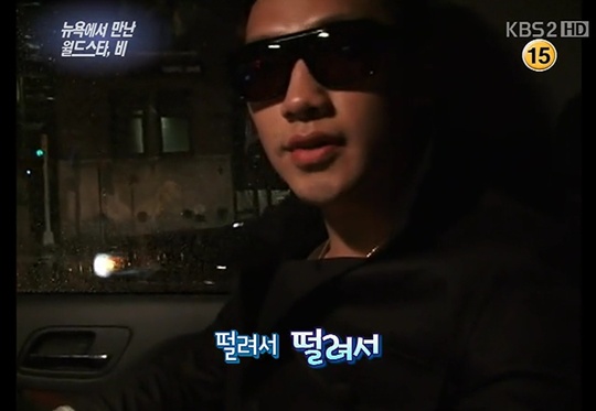 뉴욕에 도착 후 한밤중에 선글라스를 쓰고 등장해 궁금증을 자아낸 비는 "잠을 못자서 얼굴이 부었다"고 말했고 이어 "어제 떨려서 잠을 못잤다"고 전했다.