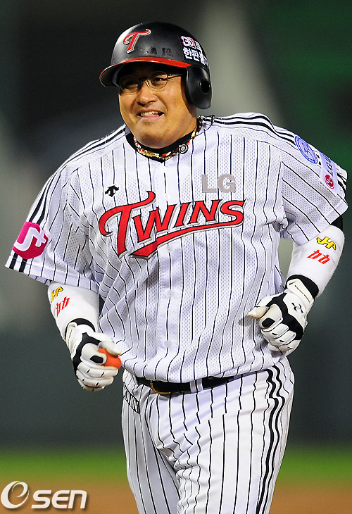OSEN=잠실,박준형 기자] 1일 오후 서울 잠실구장에서 열린 '2011 롯데카드 프로야구' LG 트윈스와 넥센 히어로즈의 경기 9회말 무사 1루 LG 서동욱의 타석때 1루주자 조인성이 2루 도루 시도해 세이프된 후 정주현과 교체되며 미소 짓고 있다/ soul1014@osen.co.kr