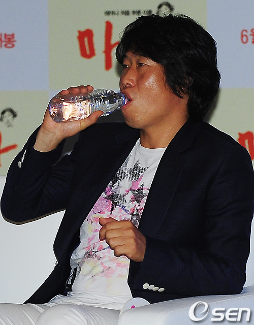 기자회견중 유해진이 물을 마시고 있다. /rumi@osen.co.kr