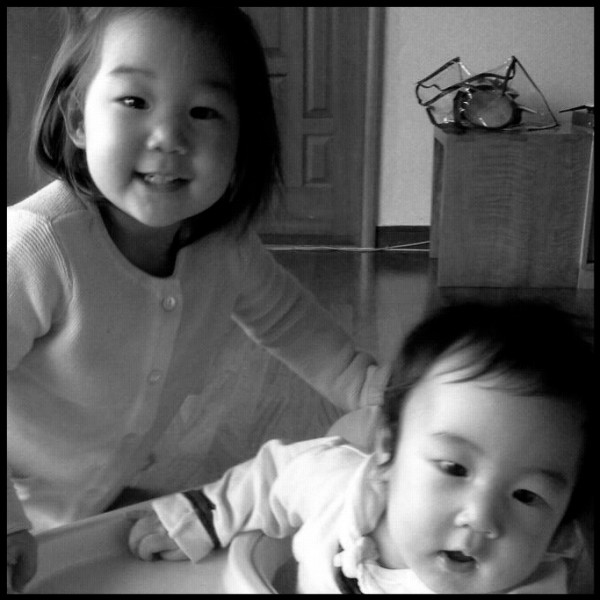 흑백 처리된 사진 속의 두 딸은 윤종신의 모습을 많이 닮은 모습으로 깜찍한 표정을 짓고 있다.