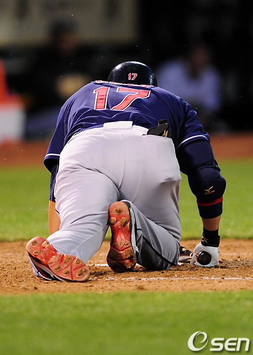 5회초 2사에서 클리블랜드 추신수가 투구를 피하며 타석에 무릎꿇고 앉아 있다. / jpnews@osen.co.kr