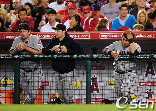 클리블랜드 추신수가 더그아웃에서 경기를 바라보고 있다. / jpnews@osen.co.kr