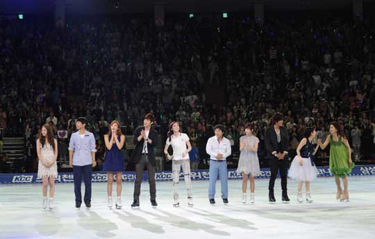 김연아가 8일 열린 자신의 아이스쇼에서 '김연아의 키스앤크라이' 출연진을 직접 관객에게 소개해 큰 박수를 받았다.