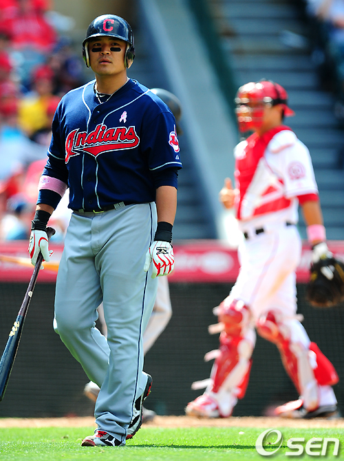 클리블랜드 인디언스의 추신수가 9일(한국시간) 애너하임의 에인절스타디움서 열린 LA 에인절스와의 원정경기에 우익수 겸 3번타자로 출전해 5타수 1안타를 기록했다. 시즌 타율은 2할2푼5리.