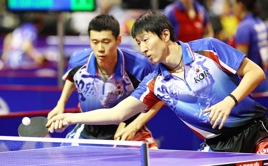 한국 탁구가 2011 세계탁구선수권에서 순항하고 있다. 남자복식에서 전원이 16강에 오른 것.