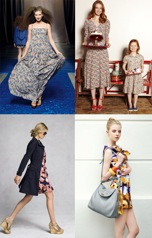 또한, 빈티지함을 자아내는 캐스키드슨의 블루, 레드, 그린컬러가 오묘하게 뒤섞인 플라워 원피스는 롱 길이로 부담없이 어디서나 입을 수 있으며, 우드로 된 웨지힐이나 코사주 달린 플랫 슈즈와 매치해 봄나들이 룩으로도 굿.
