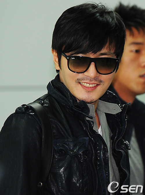 장동건이 출국장에서 취재진을 향해 환하게 미소짓고 있다./ rumi@osen.co.kr