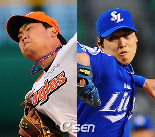 14일 대전구장에서 열리는 한화와 삼성의 '2011 롯데카드 프로야구' 한화와 삼성의 시즌 5차전은 리그를 대표하는 좌완 에이스들의 맞대결로 초미의 관심을 모으고 있다. 한화에서는 '괴물 에이스' 류현진(24), 삼성에서는 '떠오르는 별' 차우찬(24)이 선발투수로 예고됐다. 나란히 지난 2006년 고졸 신인으로 데뷔한 두 동갑내기 에이스들이 자존심을 걸고 생애 첫 선발 맞대결을 벌이는 것이다.