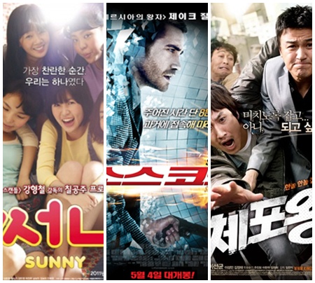 같은 날 개봉한 ‘써니’와 ‘소스 코드’, ‘체포왕’이 나란히 1, 2, 3위에 오르며 주말 극장가를 달궜다.