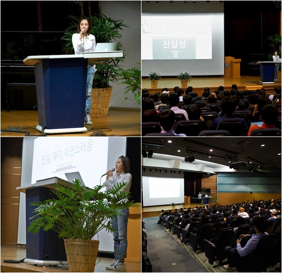 수줍은 모습으로 강단에 올라선 산다라는 "제가 강의할 입장은 아니기에, 오늘은 그냥 귀한 수업시간에 여러분들과 현장에서 일어나는 일들에 대해서 이야기를 나누고 싶다"고 운을 땐 후 미투데이를 통해 팬들과 소통하고 있는 요즘 그녀의 생각과 느낌에 대해 담담하게 이야기를 풀어나갔다.